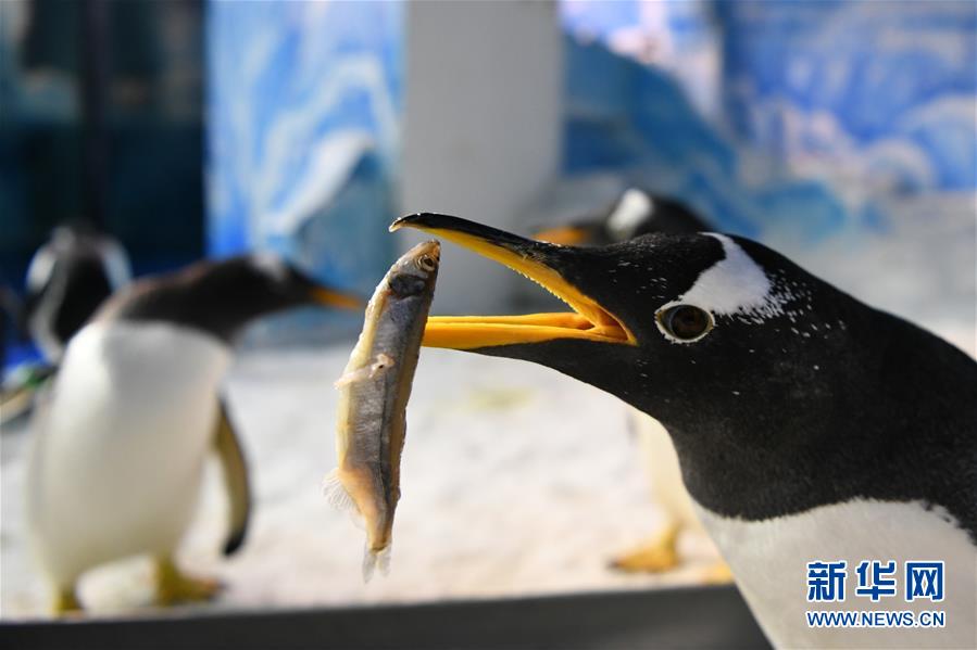 6月24日,哈爾濱極地館的企鵝在品嘗“魚粽”。當(dāng)日,哈爾濱極地館的工作人員特地準(zhǔn)備了“魚粽”“肉粽”,讓生活在這里的極地動(dòng)物也品嘗一下端午美食。新華社記者王建威攝