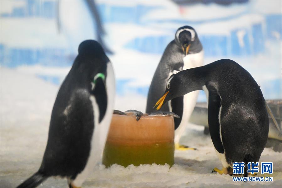 6月24日,哈爾濱極地館的企鵝在享用工作人員送來(lái)的美食。當(dāng)日,哈爾濱極地館的工作人員特地準(zhǔn)備了“魚粽”“肉粽”,讓生活在這里的極地動(dòng)物也品嘗一下端午美食。新華社記者王建威攝
