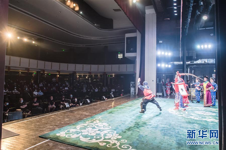 6月26日,在武漢市人民劇院,演員們?cè)诘桥_(tái)前準(zhǔn)備。新華社記者 肖藝九 攝