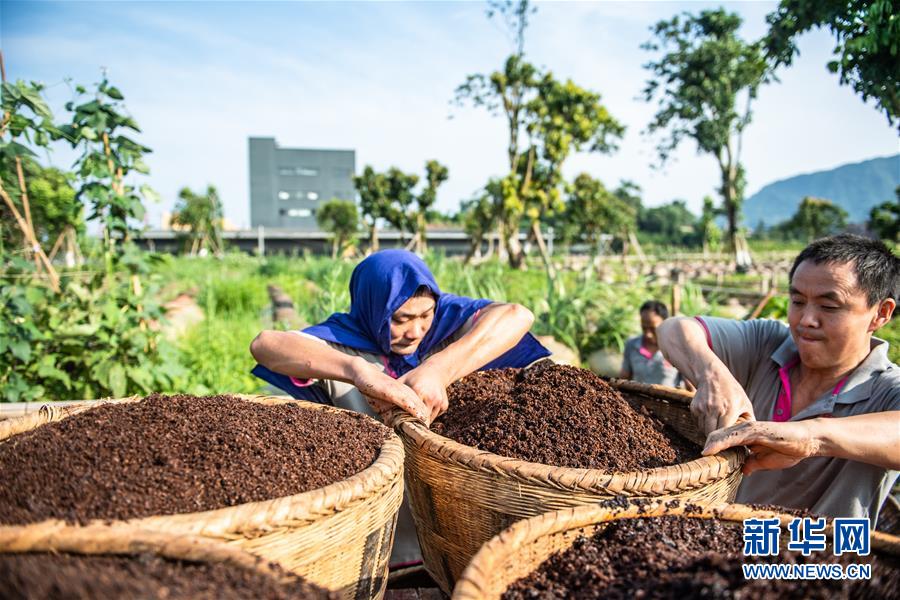 6月26日,工人在曾氏曬醋廠翻取醋醅。新華社記者 陶亮 攝