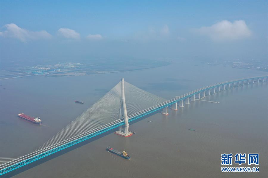 滬蘇通長江公鐵大橋(6月29日攝,無人機照片)。即將于7月1日通車的滬蘇通長江公鐵大橋北起江蘇南通,南至江蘇張家港,公鐵合建跨江正橋全長5827米,為集合高速公路、客貨混線鐵路、高速鐵路的“三合一”過江通道,建成通車后將有效促進(jìn)長三角城市群跨江融合、協(xié)同發(fā)展。新華社記者季春鵬攝
