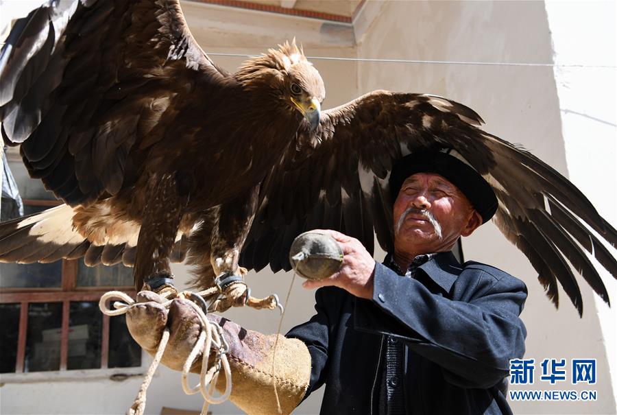 6月29日,庫(kù)爾馬西·胡特曼撫摸他的獵鷹。馴鷹習(xí)俗是柯爾克孜族長(zhǎng)期以來(lái)形成的一種生產(chǎn)生活習(xí)俗,新疆克孜勒蘇柯爾克孜自治州阿合奇縣牙朗奇村的庫(kù)爾馬西·胡特曼今年69歲,是國(guó)家級(jí)非物質(zhì)文化遺產(chǎn)代表性項(xiàng)目柯爾克孜族馴鷹習(xí)俗的代表性傳承人。庫(kù)爾馬西的家族世代馴鷹。從小與鷹相處,庫(kù)爾馬西成為名副其實(shí)的“鷹語(yǔ)者”。要將兇猛的野鷹訓(xùn)練成聽從指揮的獵鷹絕非易事,需要馴鷹人投入大量心血,精心喂養(yǎng)。一代代馴鷹人之間口耳相傳,形成了一套涵蓋取鷹、熬鷹、馴鷹、放鷹等方面的絕學(xué)?!苞検怯徐`性的動(dòng)物,懂得感恩,會(huì)通過(guò)抖動(dòng)羽毛來(lái)表示喜悅,表示對(duì)你的愛(ài)。”庫(kù)爾馬西說(shuō),“鷹也會(huì)因?yàn)槲业目洫?jiǎng)給我信號(hào),通過(guò)叫聲、身體語(yǔ)言告訴我,它理解了我的話?!痹诳聽柨俗巫宓鸟Z鷹傳統(tǒng)里,獵鷹在為主人“服役”一到五年后,將重返天空,獲得自由。隨著野生動(dòng)物保護(hù)相關(guān)法規(guī)的出臺(tái),當(dāng)?shù)匾呀柜Z鷹人取鷹捕鷹,目前已馴養(yǎng)的獵鷹放飛后恐將無(wú)以為繼。或許,庫(kù)爾馬西這一代人,將成為最后的“鷹語(yǔ)者”。新華社記者宋彥樺攝