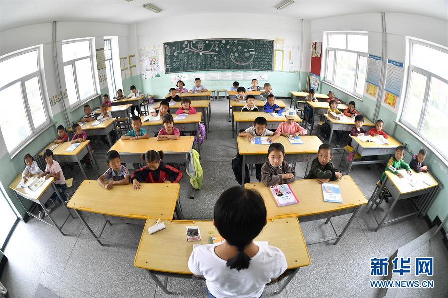 寧夏銀川市永寧縣閩寧鎮(zhèn)原隆村原隆小學(xué),一年級(jí)的孩子們?cè)谏险n(2019年9月3日攝)。新華社記者王鵬攝
