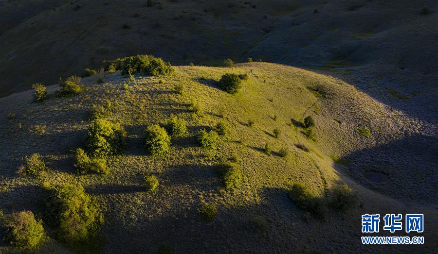 6月30日,朝霞照耀下的神田草甸(無(wú)人機(jī)照片)。位于陜西省安康市嵐皋縣與重慶市城口縣交界處大巴山神田主脊北坡的神田草甸,面積超過(guò)1.1萬(wàn)畝。夏日的朝霞中,起伏的草甸仿佛一塊寬大無(wú)邊的綠色地毯,鑲嵌在大巴山上,如詩(shī)如畫(huà)。新華社發(fā)(邱仕君攝)