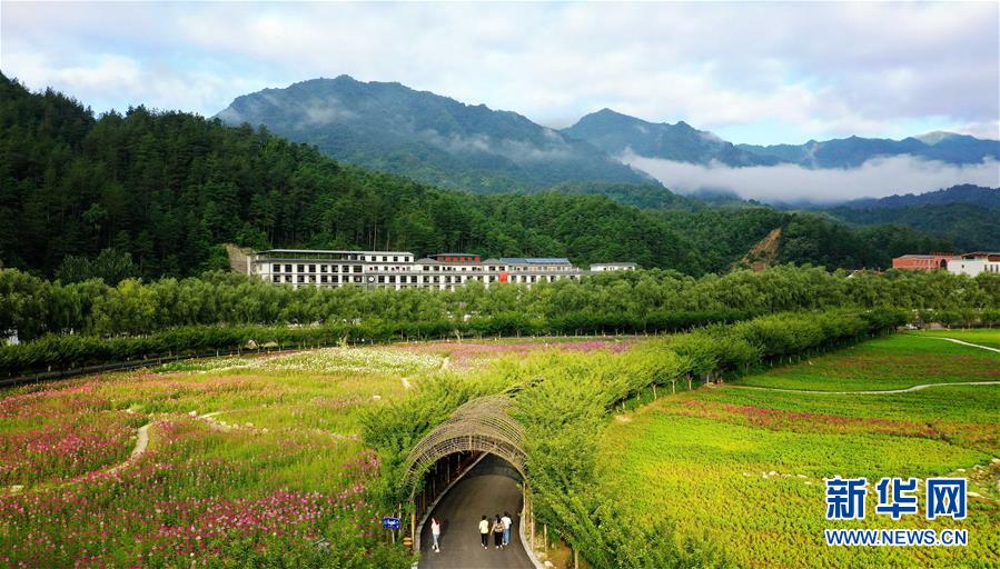7月1日,市民在位于留壩縣城的金水灣花海游玩。近日,陜西省漢中市留壩縣金水灣花海的各類鮮花次第綻放,絢麗繽紛。新華社記者劉瀟攝