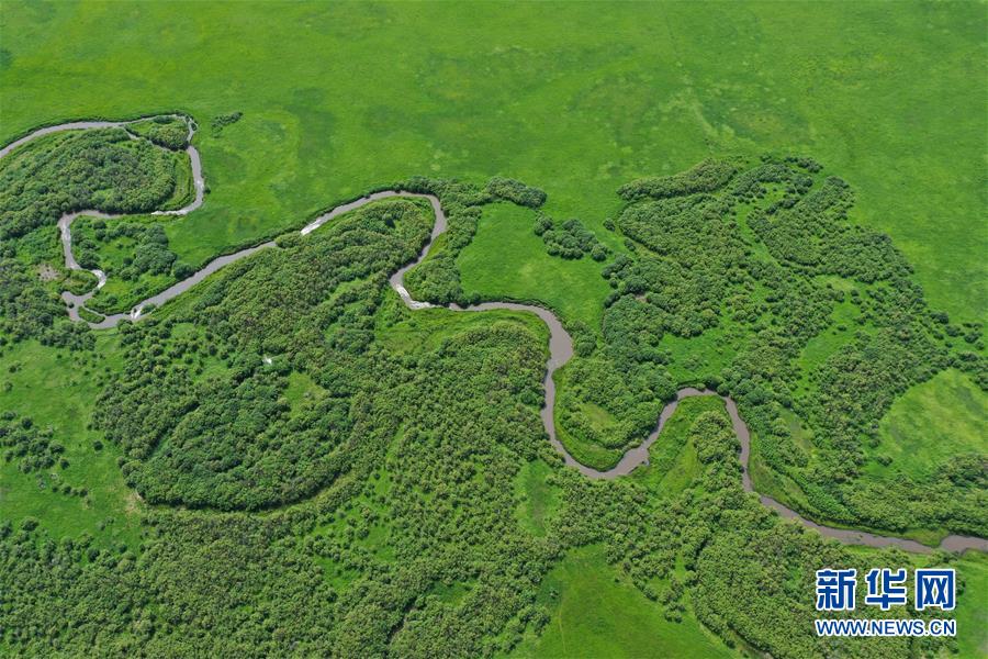 烏蘭毛都草原景色(7月2日無人機照片)。盛夏時節(jié),內(nèi)蒙古興安盟科爾沁右翼前旗的烏蘭毛都草原綠意盎然,風(fēng)景醉人。烏蘭毛都草原地處大興安嶺南麓,屬丘陵山地草原,風(fēng)光獨特。新華社記者徐欽攝