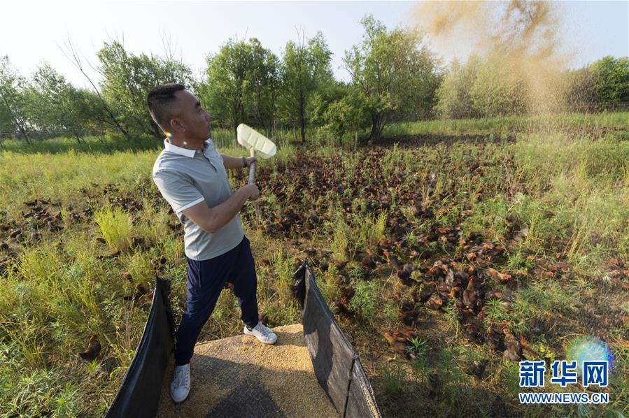 桑慶軍1979年出生,是黑龍江省明水縣崇德鎮(zhèn)茂盛村人。因家貧少時輟學(xué)外出務(wù)工,擺過地攤,當(dāng)過工人,后來成為一名工程老板。2019年6月,他返鄉(xiāng)承包了30多畝林地和草原開始飼養(yǎng)“溜達(dá)雞”。除了看好“溜達(dá)雞”的市場前景,帶動鄉(xiāng)親們致富也是促使他回鄉(xiāng)創(chuàng)業(yè)的一個重要原因。在引進(jìn)第一批雞雛后不久,桑慶軍閑暇之余把一條養(yǎng)雞的短視頻傳到網(wǎng)上,沒想到一夜之間他和他的“雞部隊”都成了“網(wǎng)紅”,“溜達(dá)雞”更因為綠色的飼養(yǎng)方式供不應(yīng)求。