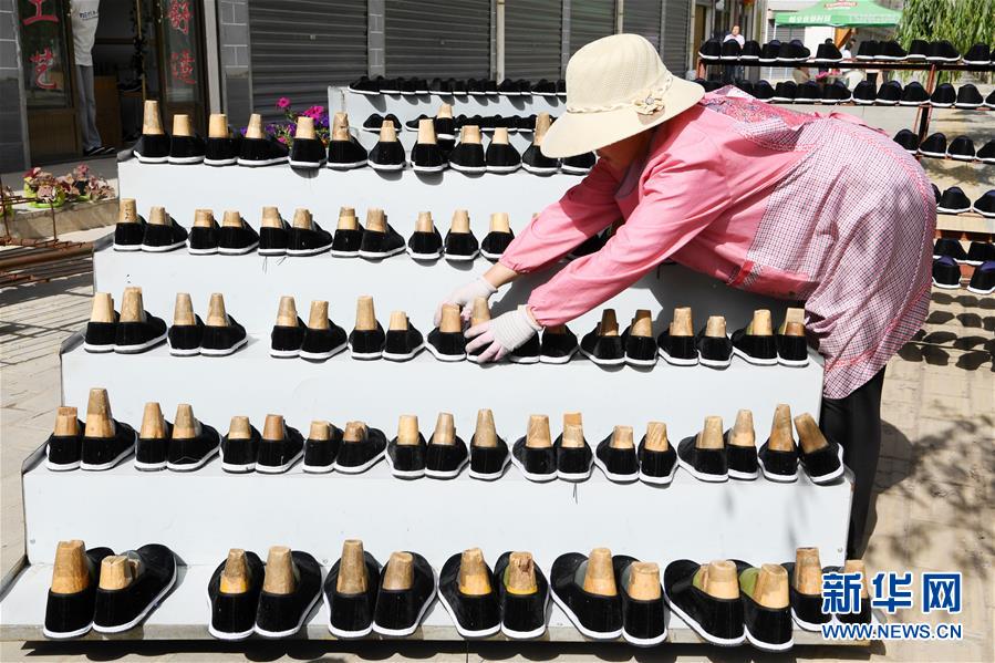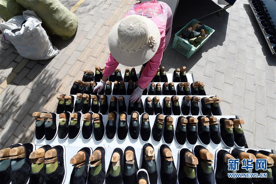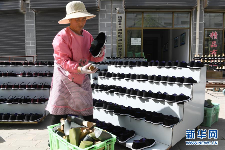 7月2日,臨夏縣百利布鞋加工農(nóng)民專業(yè)合作社員工在擺放布鞋。甘肅省臨夏回族自治州臨夏縣將布鞋加工定為重點(diǎn)扶持發(fā)展的產(chǎn)業(yè),采用“政府+公司+貧困戶”的產(chǎn)業(yè)扶貧模式,由政府主導(dǎo)、企業(yè)出資,在貧困村建設(shè)“扶貧車間”,吸納貧困群眾從事布鞋加工產(chǎn)業(yè)增加收入。截至2019年底,當(dāng)?shù)夭夹庸て髽I(yè)和加工戶遍及近百個(gè)行政村,從業(yè)人員達(dá)到4000多人,累計(jì)生產(chǎn)布鞋600多萬雙,實(shí)現(xiàn)銷售收入2.32億元。新華社記者范培珅攝