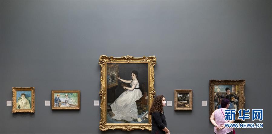 7月4日,參觀者佩戴口罩在英國國家美術(shù)館的媒體開放日上參觀。新華社記者韓巖攝