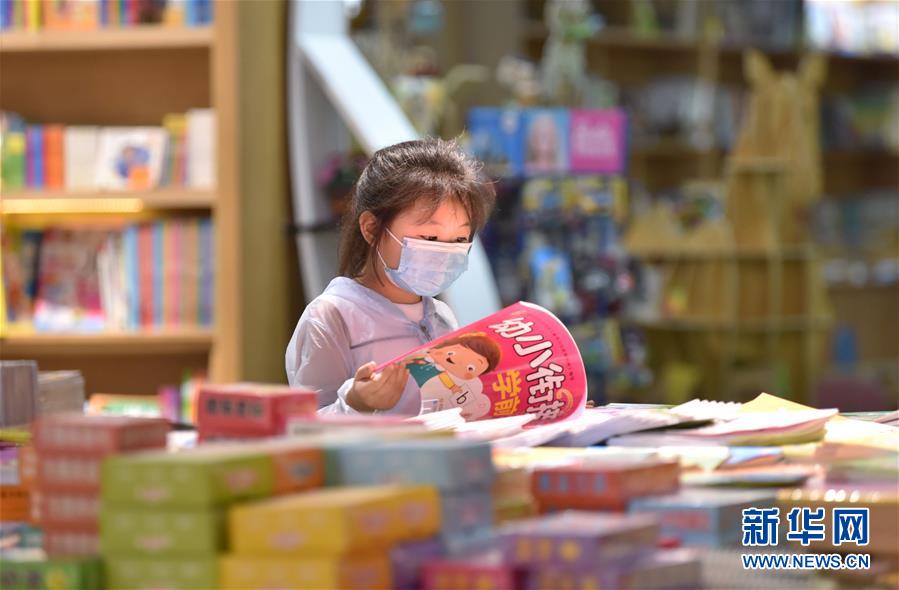 7月5日,一名小朋友在河北省定州市新華書店閱讀圖書。近日,河北省定州市新華書店在做好疫情防控的前提下,開展“樂享圖書嘉年華”系列活動,通過舉辦圖書聯(lián)展、親子閱讀、少兒讀物推介等活動,吸引少年兒童走進圖書館,感受書香陪伴的夏天。新華社記者朱旭東攝