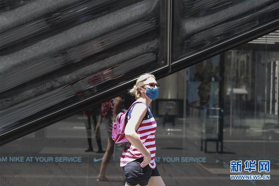 7月4日,一名女子從美國紐約第五大道一家尚未恢復(fù)營業(yè)的店鋪前走過。當(dāng)日是美國獨(dú)立日,美國多地疫情仍面臨嚴(yán)峻形勢(shì)。美國約翰斯·霍普金斯大學(xué)實(shí)時(shí)統(tǒng)計(jì)數(shù)據(jù)顯示,美國累計(jì)新冠確診病例4日已超過280萬例。新華社記者王迎攝