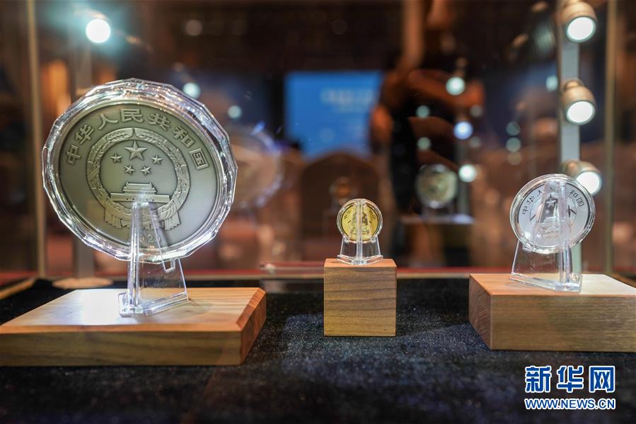 這是首發(fā)儀式現(xiàn)場展示的紀念幣(7月6日攝)。7月6日,正值良渚古城遺址成功申報世界文化遺產(chǎn)一周年。中國人民銀行于當天發(fā)行世界遺產(chǎn)(良渚古城遺址)金銀紀念幣一套,首發(fā)儀式在浙江良渚古城遺址公園舉行。新華社記者殷曉圣攝