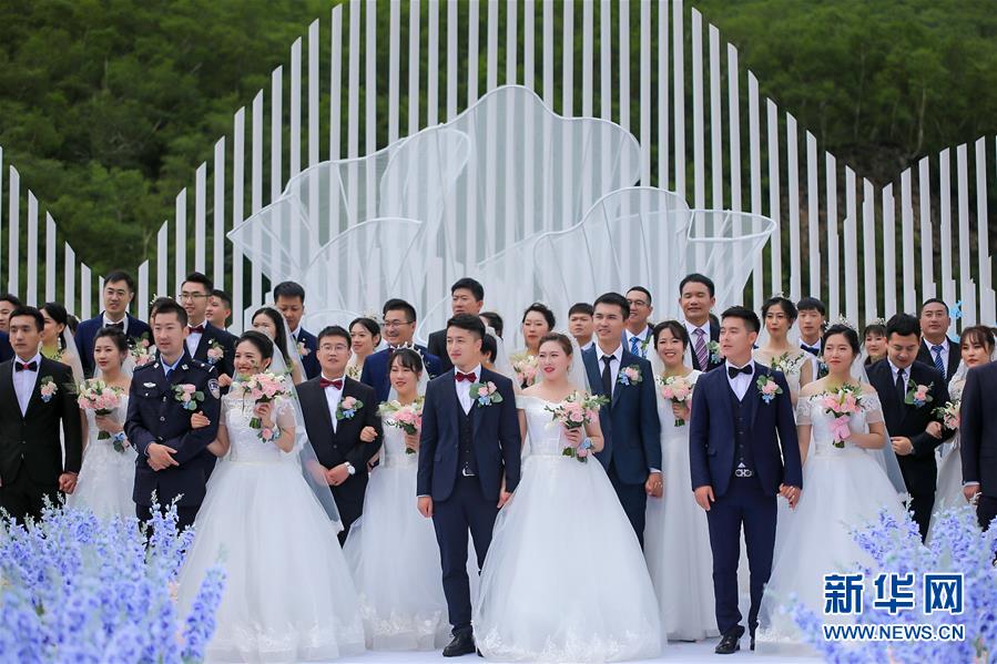 當(dāng)日,吉林省長白山管委會(huì)舉行“致敬最美逆行者”大型集體婚禮,50對來自全國各地因參加抗擊疫情工作而推遲婚期的新人參加。