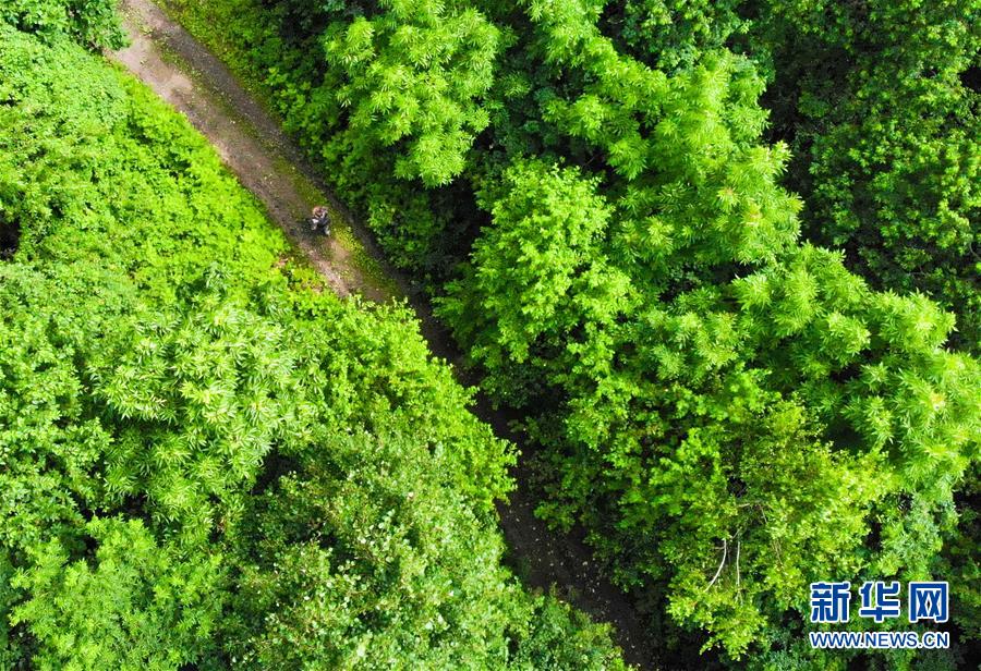 7月8日,董紅雨在迎春林業(yè)局有限公司施業(yè)區(qū)內(nèi)進(jìn)行野生東北虎信息搜集和巡護(hù)工作(無(wú)人機(jī)照片)。新華社記者王松攝