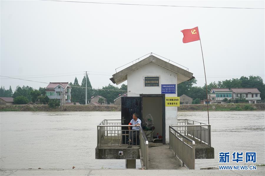 7月9日,在高淳區(qū)陽(yáng)江鎮(zhèn)永豐圩,巡堤員在值守點(diǎn)值守。新華社記者季春鵬攝