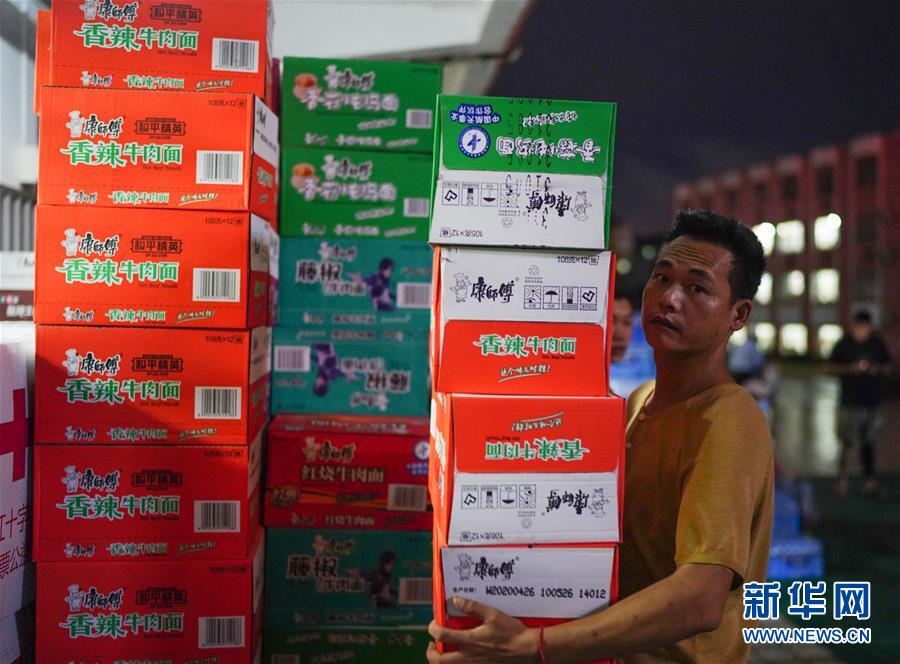 7月9日,工作人員在搬運供安置點村民食用的方便面。當(dāng)日,江西鄱陽縣鄱陽鎮(zhèn)因洪水受災(zāi)的村民被轉(zhuǎn)移到多個集中安置點。在鄱陽縣五一中心學(xué)校安置點,志愿者和工作人員接到任務(wù)后不到十小時內(nèi),為被轉(zhuǎn)移村民布置了28間教室,供519人安頓,并為村民發(fā)放褥子、床單、枕頭、盒飯、飲用水等物資。新華社記者周密攝