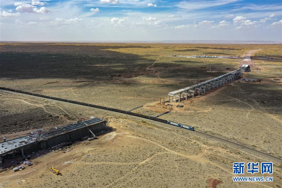 烏瑪高速青銅峽至中衛(wèi)段穿越騰格里沙漠的18公里路段,與中國首條沙漠鐵路——包蘭鐵路交匯(7月10日攝,無人機照片)。盛夏時節(jié),位于寧夏境內(nèi)的烏瑪(內(nèi)蒙古烏海市至青?,斍呖h)高速青銅峽至中衛(wèi)段正在抓緊施工建設。該路段主線全長122.9公里,其中穿越騰格里沙漠腹地的18公里公路是寧夏建設的首條沙漠高速公路,預計2021年建成通車。新華社記者馮開華攝。