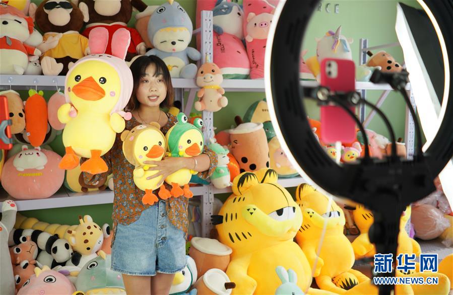 7月13日,河北省內(nèi)丘縣一家玩具生產(chǎn)企業(yè)工作人員通過網(wǎng)絡(luò)直播銷售毛絨玩具。近年來,河北省內(nèi)丘縣積極拓寬農(nóng)村留守婦女就業(yè)創(chuàng)業(yè)渠道,通過開展就業(yè)技能培訓(xùn),對接用工企業(yè)為農(nóng)村留守婦女搭建就業(yè)平臺,吸納農(nóng)村婦女在家門口穩(wěn)定就業(yè)增收,實(shí)現(xiàn)顧家、賺錢兩不誤。新華社記者 朱旭東 攝