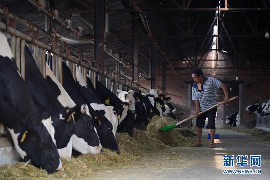 7月11日,河北省清河縣永興奶牛養(yǎng)殖場(chǎng)的工人正在工作。近年來(lái),河北省清河縣將扶貧工作與現(xiàn)代農(nóng)業(yè)結(jié)合,以龍頭企業(yè)為引領(lǐng),成立合作社,鼓勵(lì)貧困戶(hù)利用扶貧資金入股奶牛養(yǎng)殖場(chǎng),幫助他們常年獲得穩(wěn)定收益。同時(shí),貧困戶(hù)農(nóng)閑時(shí)還可到產(chǎn)業(yè)園區(qū)打工,既拿股金,又掙薪金,實(shí)現(xiàn)“造血式”脫貧。新華社記者 牟宇 攝