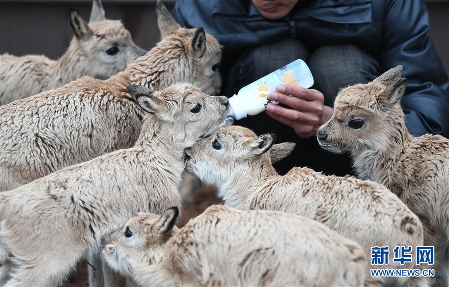 7月7日,三江源國家公園管理局長江源園區(qū)可可西里管理處卓乃湖保護(hù)站的工作人員才文多杰在給藏羚羊幼仔喂奶。