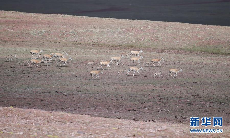 7月7日在可可西里卓乃湖區(qū)域拍攝的藏羚羊。目前正值藏羚羊產(chǎn)仔季。來自青海三江源、新疆阿爾金山、西藏羌塘等地的藏羚羊來到位于青海省可可西里腹地、被譽為“藏羚羊大產(chǎn)房”的卓乃湖區(qū)域產(chǎn)仔。新華社記者 張龍 攝