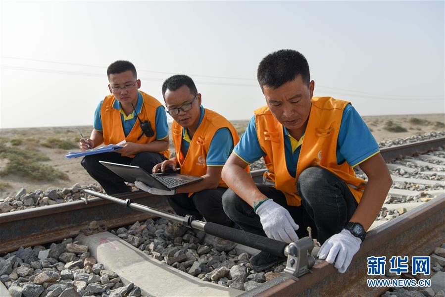 技術(shù)員進(jìn)行鋼軌廓形檢測(7月14日攝)。新華社記者 丁磊 攝