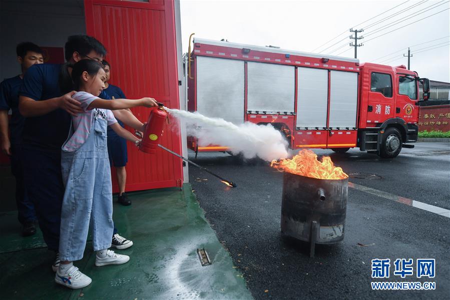 7月16日,一名小學生在東林鎮(zhèn)消防綜合應急救援隊隊員的指導下學習使用滅火器。當日,浙江省湖州市吳興區(qū)東林鎮(zhèn)舉辦暑期“安全防護小超人”主題活動。活動由醫(yī)護人員、消防隊員等為學生及家長講授日常安全避險及溺水急救知識,中小學們還在現(xiàn)場學習了簡易包扎、心肺復蘇的正確方式,并了解滅火器、滅火毯等消防器材的使用,為學生平安過暑期打好安全防護“預防針”。新華社記者 徐昱 攝