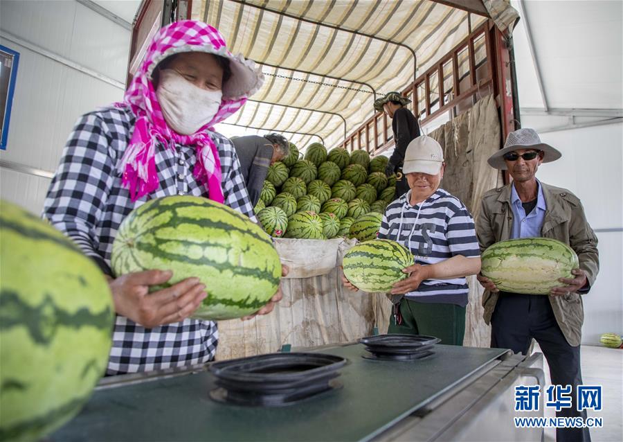 7月16日,在寧夏中衛(wèi)市香山鄉(xiāng)硒砂瓜萬畝示范基地,瓜農(nóng)在采收硒砂瓜。近日,寧夏中衛(wèi)市迎來硒砂瓜豐收季。硒砂瓜是中衛(wèi)市的特色農(nóng)產(chǎn)品,近年來,當(dāng)?shù)夭扇〖夹g(shù)創(chuàng)新、規(guī)模化種植、休耕輪作等多項(xiàng)舉措,讓硒砂瓜種植成為當(dāng)?shù)剞r(nóng)民增收致富的重要產(chǎn)業(yè)。據(jù)了解,今年中衛(wèi)市硒砂瓜種植面積為69.7萬畝。新華社記者楊植森攝