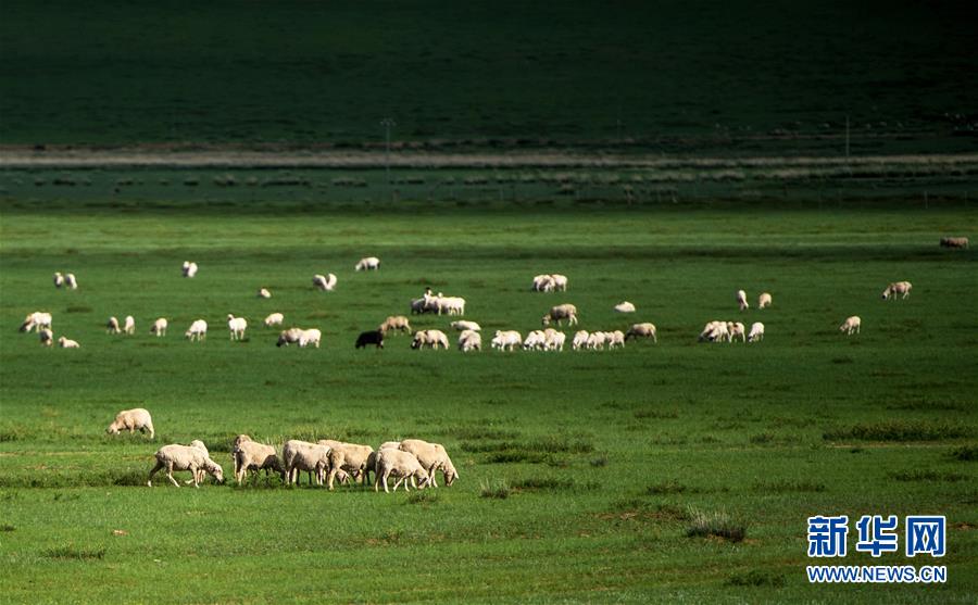 7月18日,羊群在內(nèi)蒙古錫林郭勒盟正鑲白旗境內(nèi)的草原上覓食。連日來(lái),內(nèi)蒙古錫林郭勒盟迎來(lái)多次降雨,境內(nèi)廣袤的草原經(jīng)過(guò)雨水的滋潤(rùn),煥發(fā)出勃勃生機(jī)。新華社記者連振攝