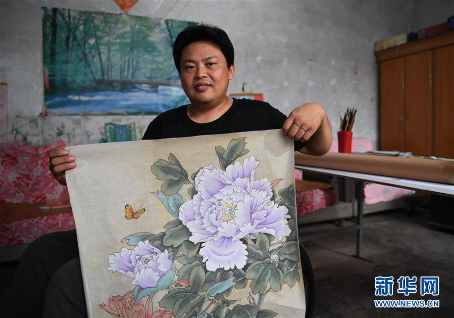7月22日,王紅彬展示其創(chuàng)作的工筆畫(huà)作品。新華社記者朱旭東攝