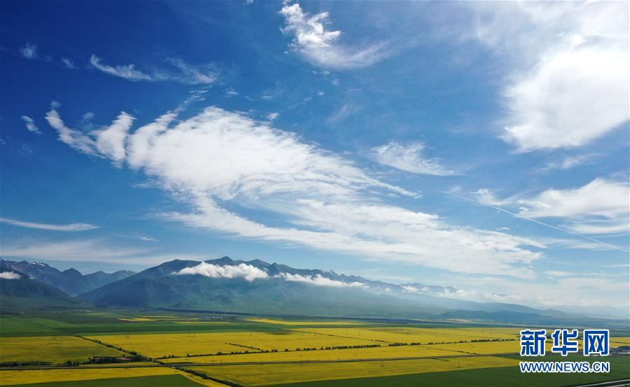 這是7月22日拍攝的門源回族自治縣的油菜花田(無人機(jī)照片)。新華社記者 張宏祥 攝
