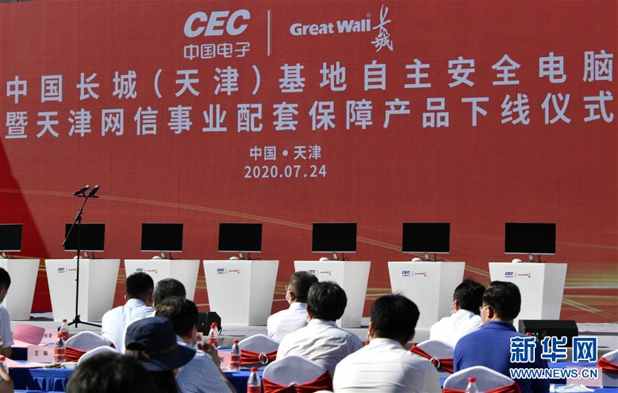 7月24日在中國長城(天津)基地拍攝的儀式現(xiàn)場。當(dāng)日,中國長城(天津)基地自主安全電腦暨天津網(wǎng)信事業(yè)配套保障產(chǎn)品下線儀式在天津濱海高新區(qū)舉行。據(jù)了解,中國長城(天津)基地網(wǎng)信事業(yè)配套保障體系項目主要服務(wù)華北地區(qū),生產(chǎn)國產(chǎn)化自主安全電腦,建設(shè)國產(chǎn)化自主安全數(shù)據(jù)中心。新華社記者李然攝