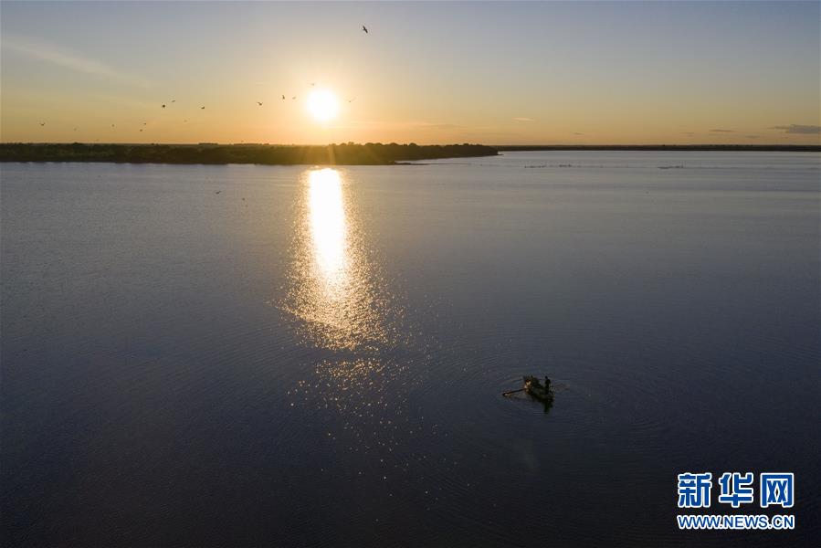 7月24日,漁民在大力加湖中捕魚(無(wú)人機(jī)照片)。大力加湖位于“中國(guó)東極”黑龍江省撫遠(yuǎn)市,面積28.5平方公里,兩岸地勢(shì)低平,多濕地、草原,湖內(nèi)水產(chǎn)豐富。夏日傍晚時(shí)分,漁民捕魚歸來,美麗畫卷映入眼簾。新華社記者謝劍飛攝