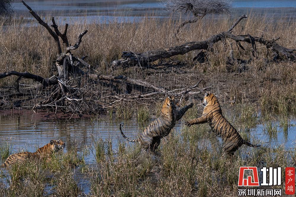 2020年7月27日,兩只老虎幼崽激烈的水上爭(zhēng)奪戰(zhàn)。
