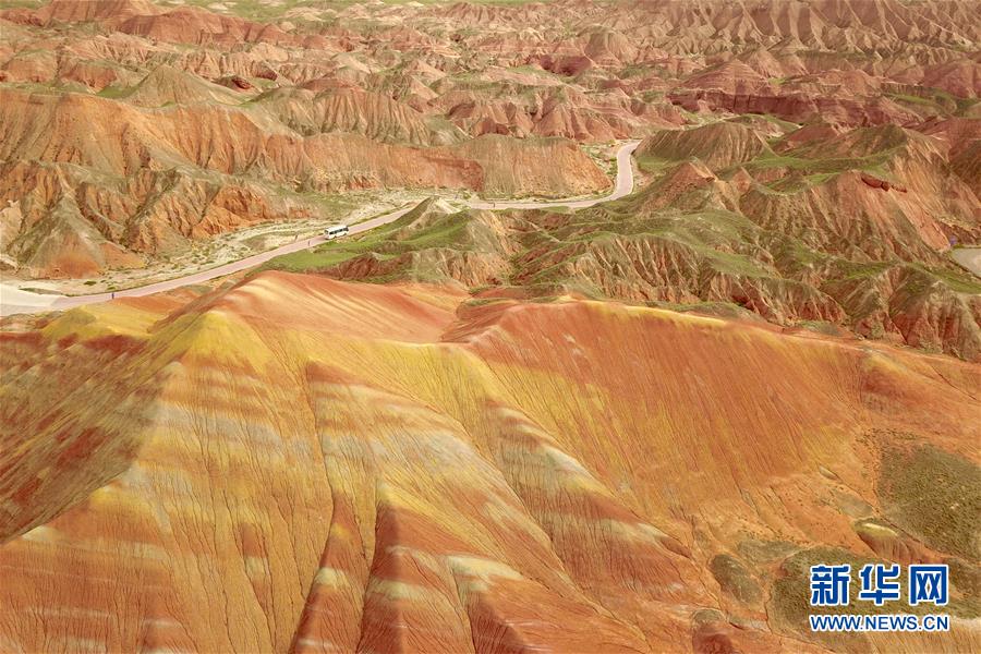 這是7月26日拍攝的張掖世界地質(zhì)公園七彩丹霞景區(qū)景觀(無人機(jī)照片)。新華社記者 范培珅 攝