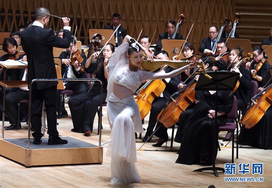 7月29日晚,演員在2020上海夏季音樂節(jié)閉幕音樂會(huì)上表演。當(dāng)日,2020上海夏季音樂節(jié)在上海交響樂團(tuán)音樂廳閉幕。閉幕音樂會(huì)上演出了作曲家譚盾創(chuàng)作并指揮的《敦煌·慈悲頌》。新華社記者任瓏攝