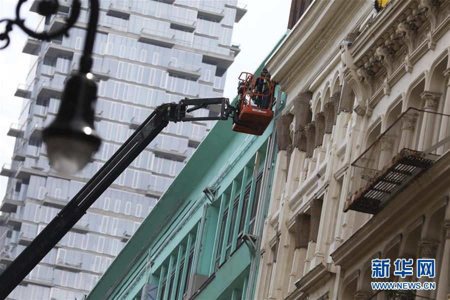 7月30日,在美國紐約蘇豪商業(yè)區(qū),工人在一棟建筑外作業(yè)。美國商務(wù)部30日公布的首次預(yù)估數(shù)據(jù)顯示,受新冠疫情導(dǎo)致經(jīng)濟(jì)大面積“停擺”和消費(fèi)停滯拖累,今年第二季度美國實(shí)際國內(nèi)生產(chǎn)總值(GDP)按年率計(jì)算下滑32.9%,創(chuàng)1947年有記錄以來最大降幅。新華社記者王迎攝