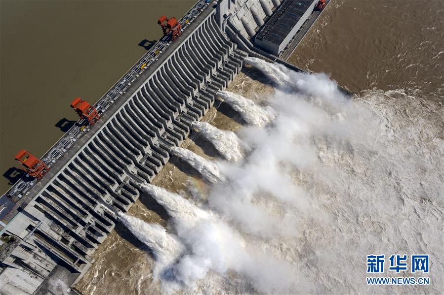 8月2日,江水通過三峽大壩下泄(無人機照片)。據水利部長江水利委員會消息,7月以來,長江流域共出現6次強降雨過程,長江上游先后發(fā)生3次編號洪水。為減輕中下游防洪壓力,包括三峽、葛洲壩在內的長江中上游水庫群共攔洪300多億立方米。新華社記者杜華舉攝