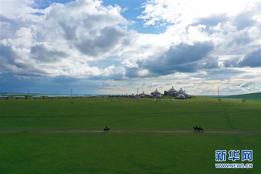 這是呼倫貝爾陳巴爾虎旗天下草原游牧部落一景(8月3日攝,無人機照片)。今年暑期,內(nèi)蒙古呼倫貝爾通過暫行周末2.5天彈性休假工作制度,發(fā)放旅游、餐飲消費券,景區(qū)推出優(yōu)惠促銷活動等措施,提振當?shù)芈糜问袌?。新華社記者徐欽攝