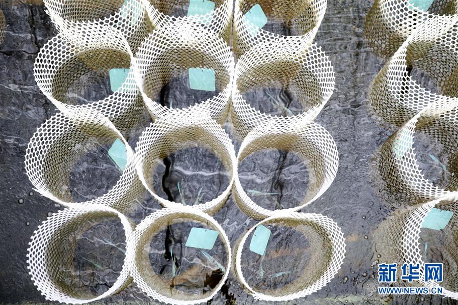 這是張忠堡村村民李國(guó)鵬養(yǎng)殖池里的觀(guān)賞魚(yú)育種筐(8月4日攝)。新華社記者姚劍鋒攝