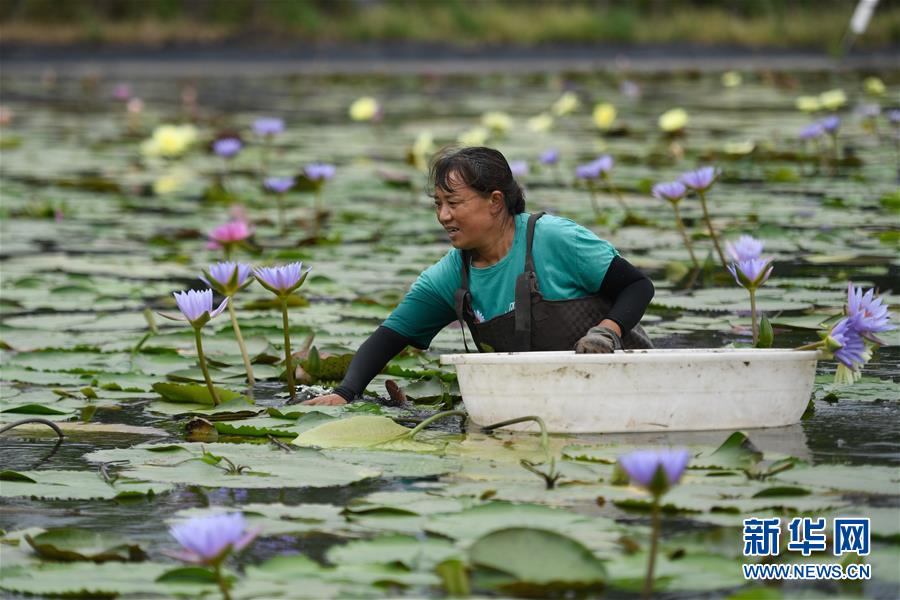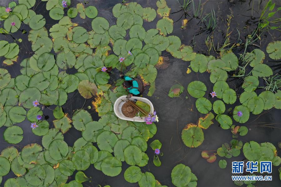 8月4日,藝溯家生態(tài)農(nóng)場工作人員在池塘采摘香水蓮花。近年來,位于浙江湖州吳興區(qū)八里店鎮(zhèn)移沿山村的藝溯家生態(tài)農(nóng)場,在約45畝的傳統(tǒng)水產(chǎn)養(yǎng)殖池塘上規(guī)?;N植香水蓮花,既凈化水質(zhì),又提高了經(jīng)濟(jì)效益。農(nóng)場還設(shè)計出種植、采摘和加工香水蓮花的工藝流程,以面向更多農(nóng)戶推廣。新華社記者黃宗治攝