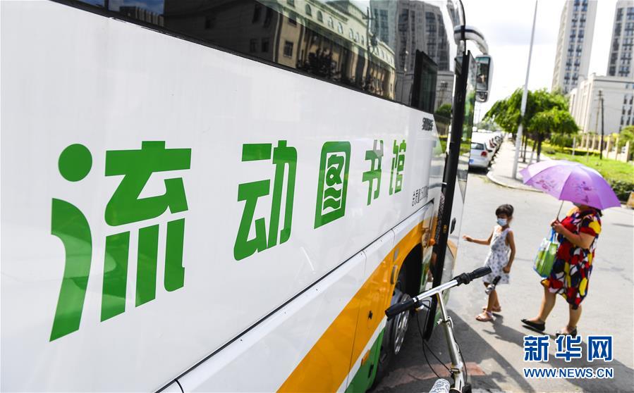 8月5日,在長春市一處社區(qū)服務(wù)點(diǎn),一名市民騎行經(jīng)過“流動(dòng)圖書館”。三千冊(cè)圖書,一輛大巴車,穿梭在城市的街頭巷尾。在吉林長春,長春市圖書館利用流動(dòng)圖書車,定期在市內(nèi)15個(gè)固定服務(wù)點(diǎn)間巡回流動(dòng),為市民提供便捷的圖書借閱服務(wù)。新華社記者許暢攝