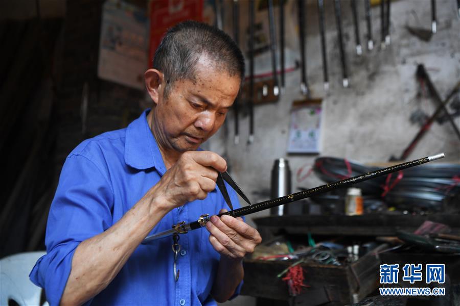 8月5日,豐盛古鎮(zhèn)經(jīng)營秤桿店的居民王澤喜在制作秤桿。近年來,重慶市巴南區(qū)引入社會資本,按照“修舊如舊、適度開發(fā)”的原則對豐盛古鎮(zhèn)進(jìn)行保護(hù)性修繕和景區(qū)化打造,讓古鎮(zhèn)在保留原有歷史人文風(fēng)貌的同時,煥發(fā)新活力。新華社記者王全超攝
