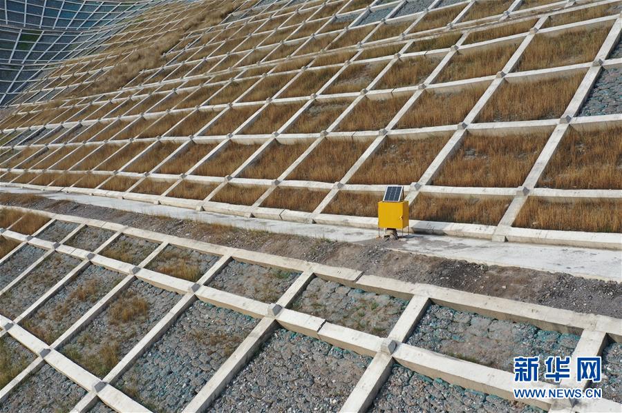這是7月15日在舟曲縣南峪鄉(xiāng)江頂崖山體滑坡治理點(diǎn)拍攝的一處技術(shù)監(jiān)測設(shè)備(無人機(jī)照片)。新華社記者杜哲宇攝