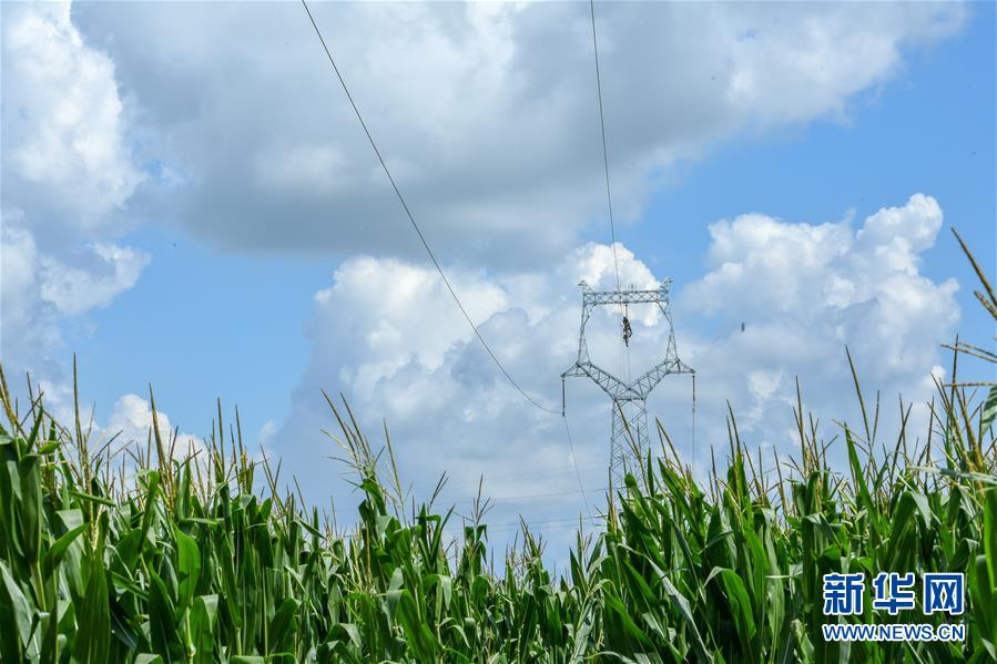8月6日,送電工在吉林省長春市城郊的一處輸電鐵塔上施工作業(yè)。吉林省長春市連續(xù)多日出現(xiàn)高溫天氣,國網(wǎng)長春供電公司輸電運檢中心的送電工們每天清晨開始作業(yè),不畏烈日“烤”驗,堅守工作崗位,確保工程按計劃完成。新華社記者張楠攝