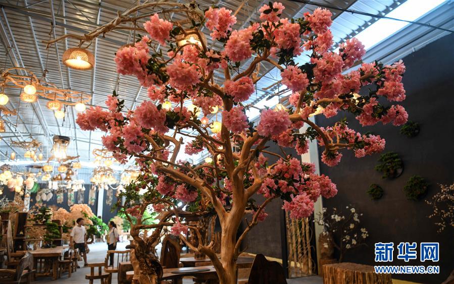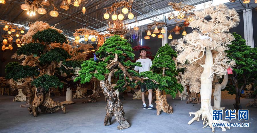 這是8月7日在永??h永安鄉(xiāng)根雕工藝品就業(yè)扶貧車間拍攝的根雕工藝品。2017年以來,廣西桂林市永??h永安鄉(xiāng)通過幫扶返鄉(xiāng)青年創(chuàng)業(yè)的方式,建立起根雕工藝品就業(yè)扶貧車間,組織貧困群眾進車間務(wù)工學(xué)藝,把當(dāng)?shù)刎S富的朽木和柑橘樹根枝資源利用起來,加工成盆景、茶桌、吊燈等根雕工藝品,不僅幫助貧困群眾在家門口掌握一技之長,還讓他們在脫貧摘帽后實現(xiàn)穩(wěn)定增收。新華社記者張愛林攝