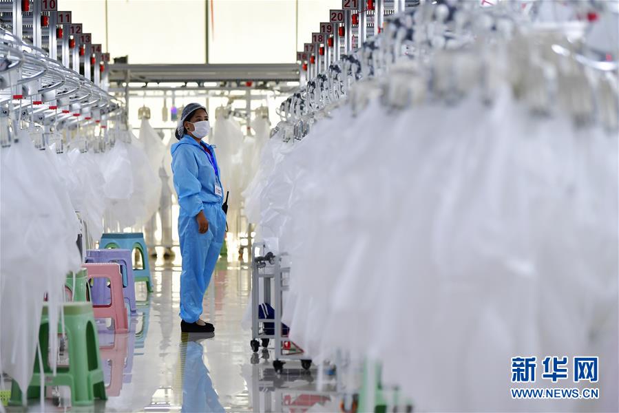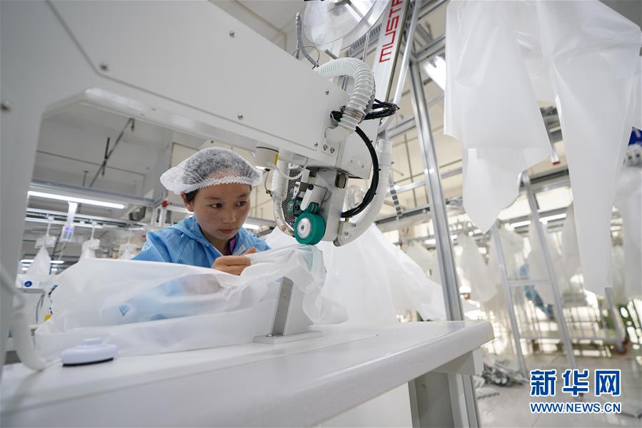 8月9日,甘肅拓奇扶貧車間的員工在服裝加工生產(chǎn)線上作業(yè)。甘肅拓奇扶貧車間位于甘肅省臨夏回族自治州積石山縣,是依托東西部扶貧協(xié)作平臺引進(jìn)的服裝加工企業(yè)。扶貧車間建成投產(chǎn)以來帶動就業(yè)近300人,其中吸納建檔立卡貧困戶就業(yè)110人,實現(xiàn)了貧困群眾就地就近就業(yè)增收的目的,為助推當(dāng)?shù)孛撠毠约翱h域經(jīng)濟發(fā)展發(fā)揮了重要作用。新華社記者陳斌攝。