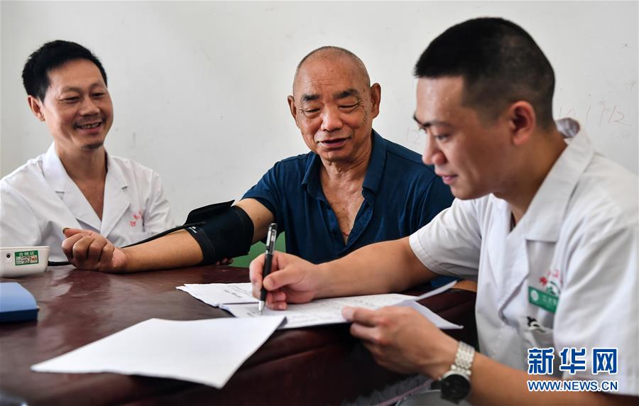 陜西安康市嵐皋縣佐龍鎮(zhèn)中心衛(wèi)生院的醫(yī)生在佐龍村對家庭醫(yī)生簽約服務(wù)對象進(jìn)行慢性病隨訪(7月30日攝)。目前,嵐皋縣組建了71個鎮(zhèn)級家庭醫(yī)生服務(wù)團(tuán)隊、15個縣級技術(shù)指導(dǎo)團(tuán)隊,對貧困群眾開展重點人群免費體檢、慢病隨訪、健康生活指導(dǎo)、健康扶貧政策宣傳等簽約服務(wù)項目。新華社記者劉瀟攝。