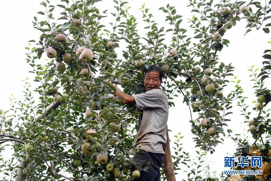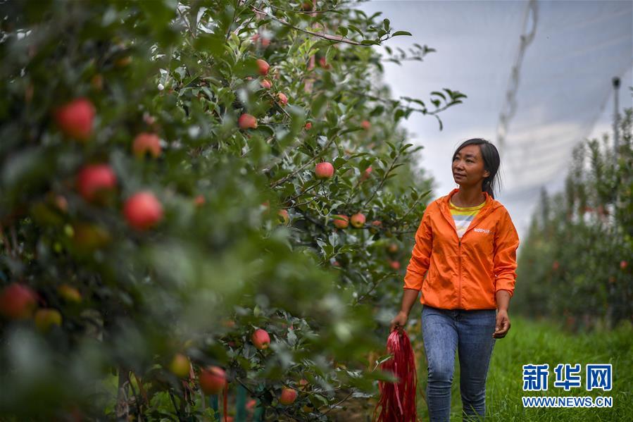 8月8日,昭通超越萬畝蘋果基地工人甄全米在蘋果園工作。近年來,云南省昭通市確立以蘋果產(chǎn)業(yè)為主導(dǎo)的現(xiàn)代農(nóng)業(yè)產(chǎn)業(yè)發(fā)展戰(zhàn)略。目前,該市蘋果種植面積近80萬畝,覆蓋全市20余個鄉(xiāng)鎮(zhèn),果農(nóng)種植蘋果年人均收入4000元以上,推動30多萬果農(nóng)依托蘋果產(chǎn)業(yè)實現(xiàn)脫貧致富,半城蘋果滿城香的“蘋果之城”正在烏蒙山區(qū)奮力崛起。新華社記者江文耀攝。