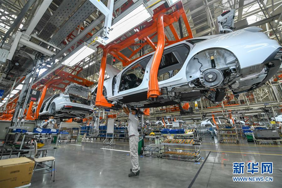 8月10日,在一汽-大眾長(zhǎng)春基地總裝車間,工人在裝配車輛。中國(guó)第一汽車集團(tuán)有限公司7月銷售整車32.2萬(wàn)輛,同比增長(zhǎng)23.2%,延續(xù)上半年的增長(zhǎng)態(tài)勢(shì)。新華社記者張楠攝。